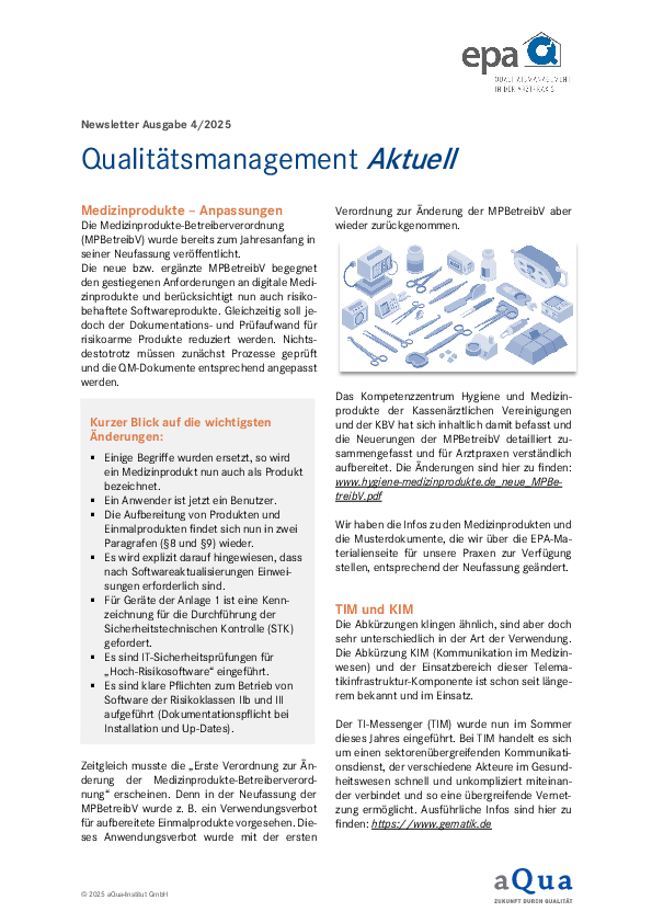 Wir haben die Infos zu den Medizinprodukten und die Musterdokumente, die wir über die EPA-Materialienseite für unsere Praxen zur Verfügung stellen, entsprechend der Neufassung geändert.